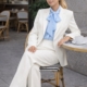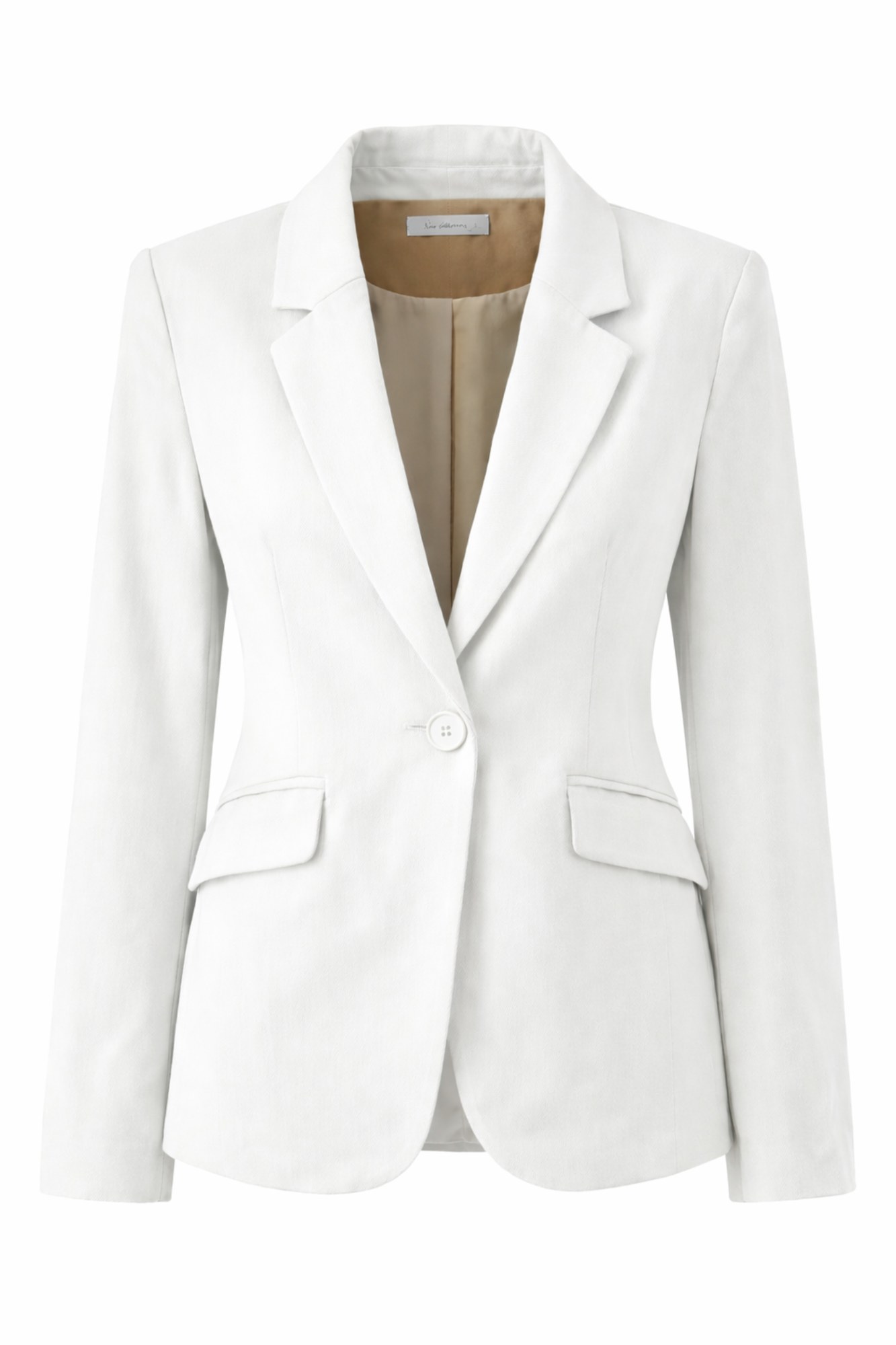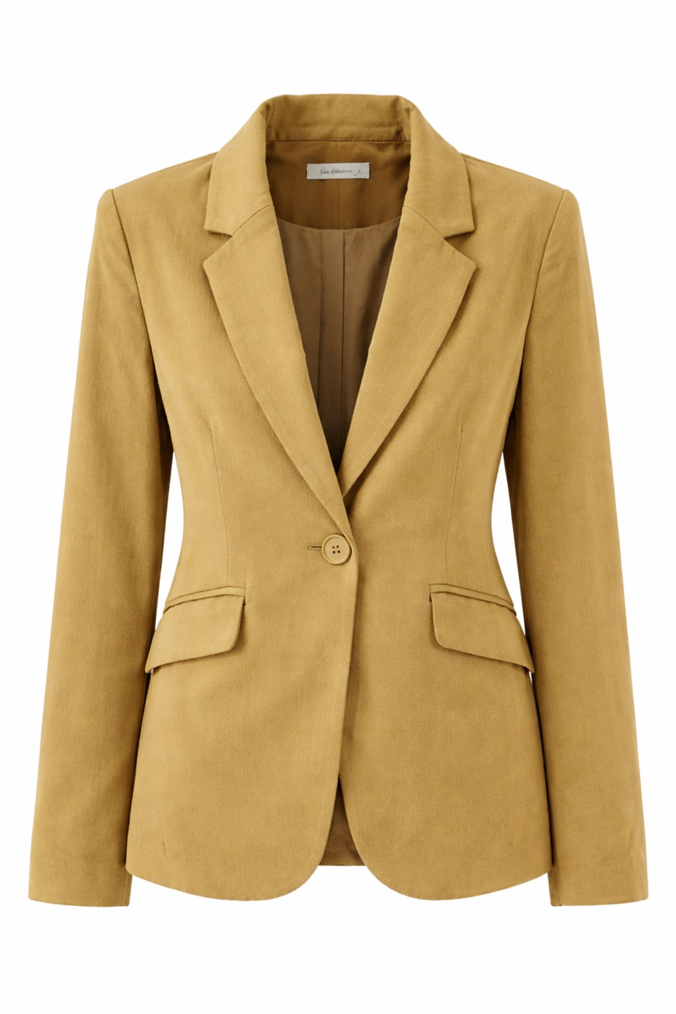 Chaqueta de corte sastre en tono mostaza y banco, diseñada para estilizar la silueta con un patrón estructurado y femenino. Presenta solapa clásica, cierre frontal de un botón y bolsillos con tapeta que aportan un acabado limpio y sofisticado. Su tejido fluido y ligero permite un ajuste cómodo sin perder elegancia, convirtiéndola en una pieza versátil tanto para looks de oficina como para estilismos más especiales. Combínala con su pantalón a juego para un conjunto impecable o llévala con denim para un aire más relajado y actual.