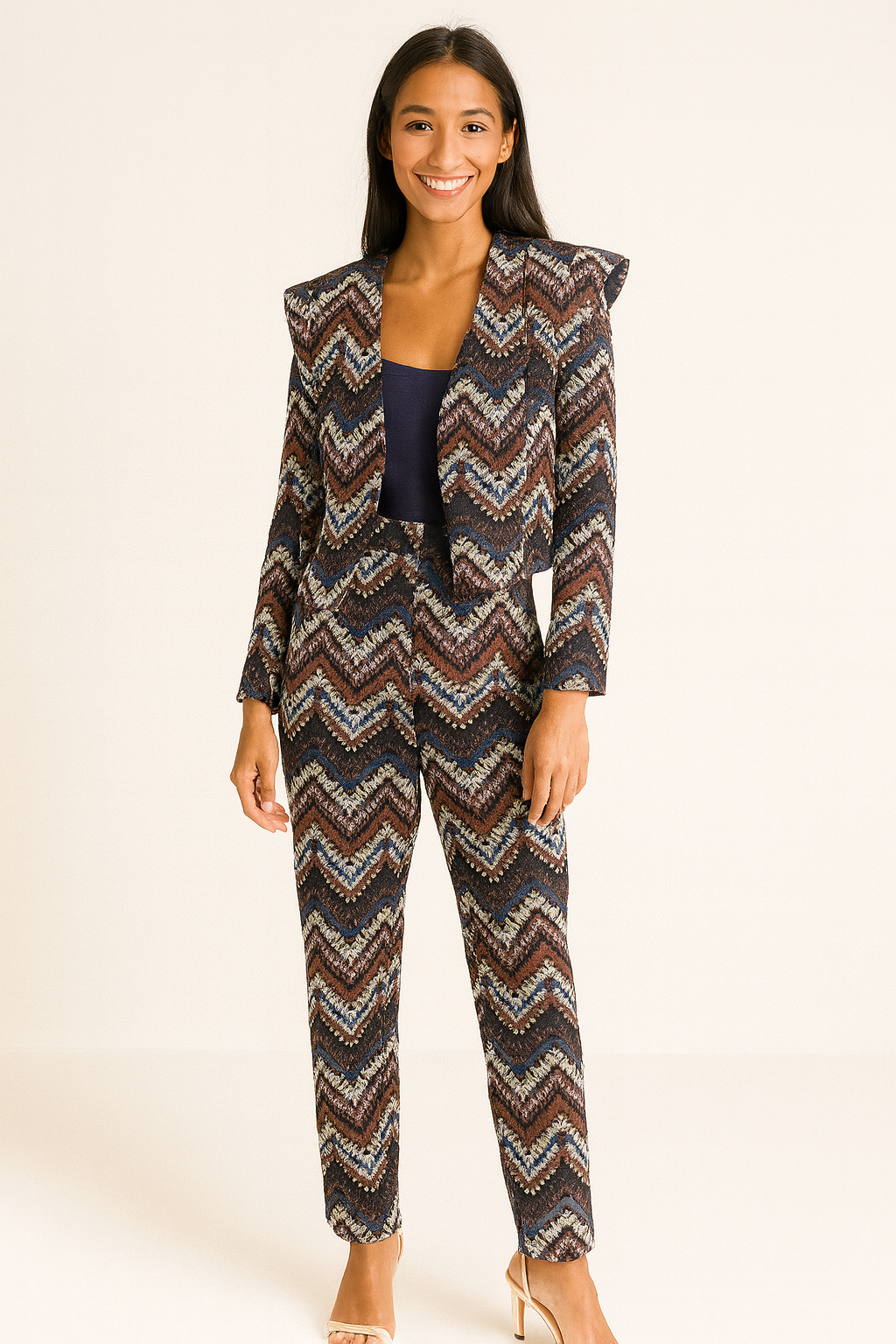 Traje de chaqueta compuesto por torera corta con solapa en los hombros y pantalón